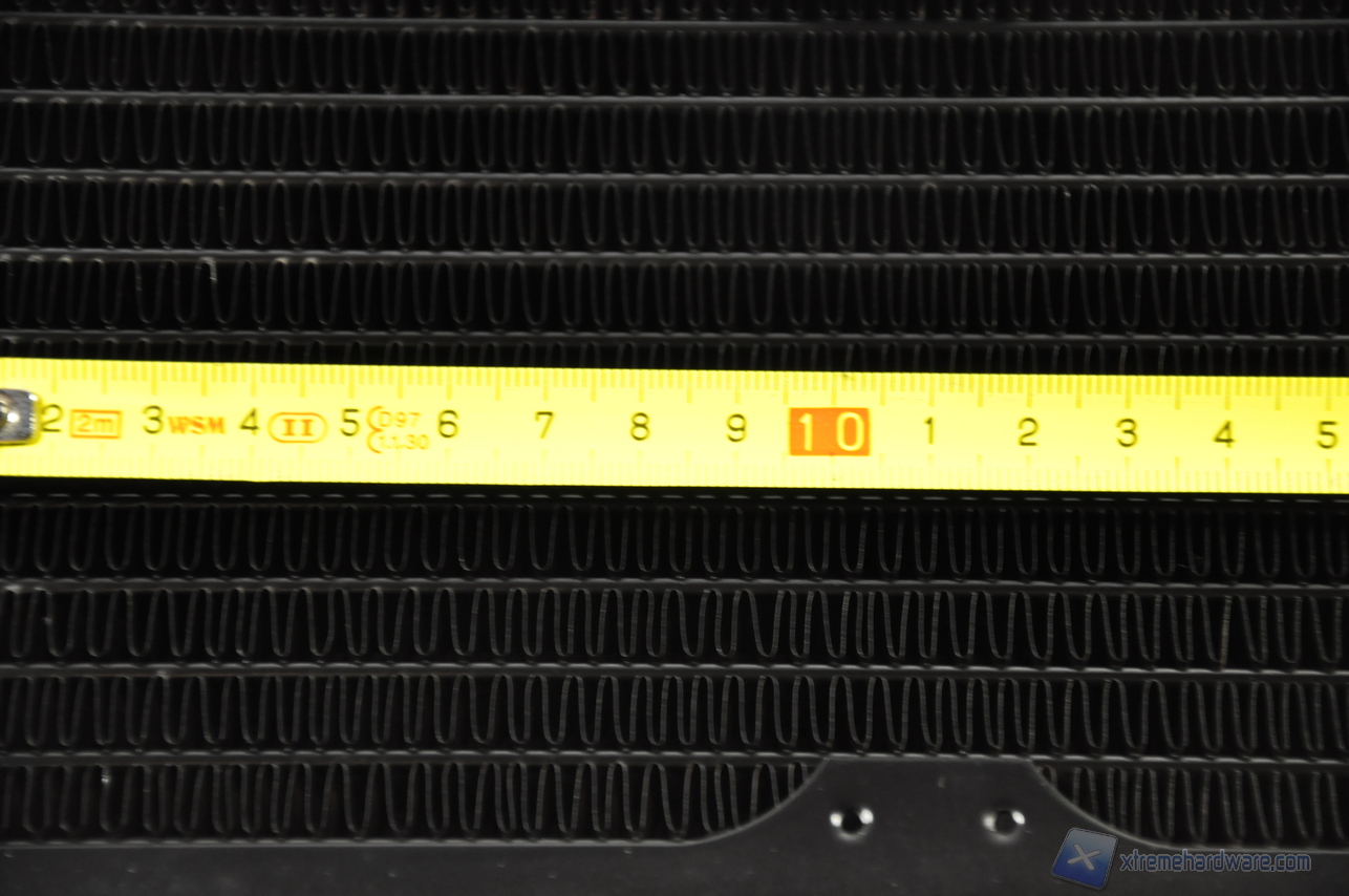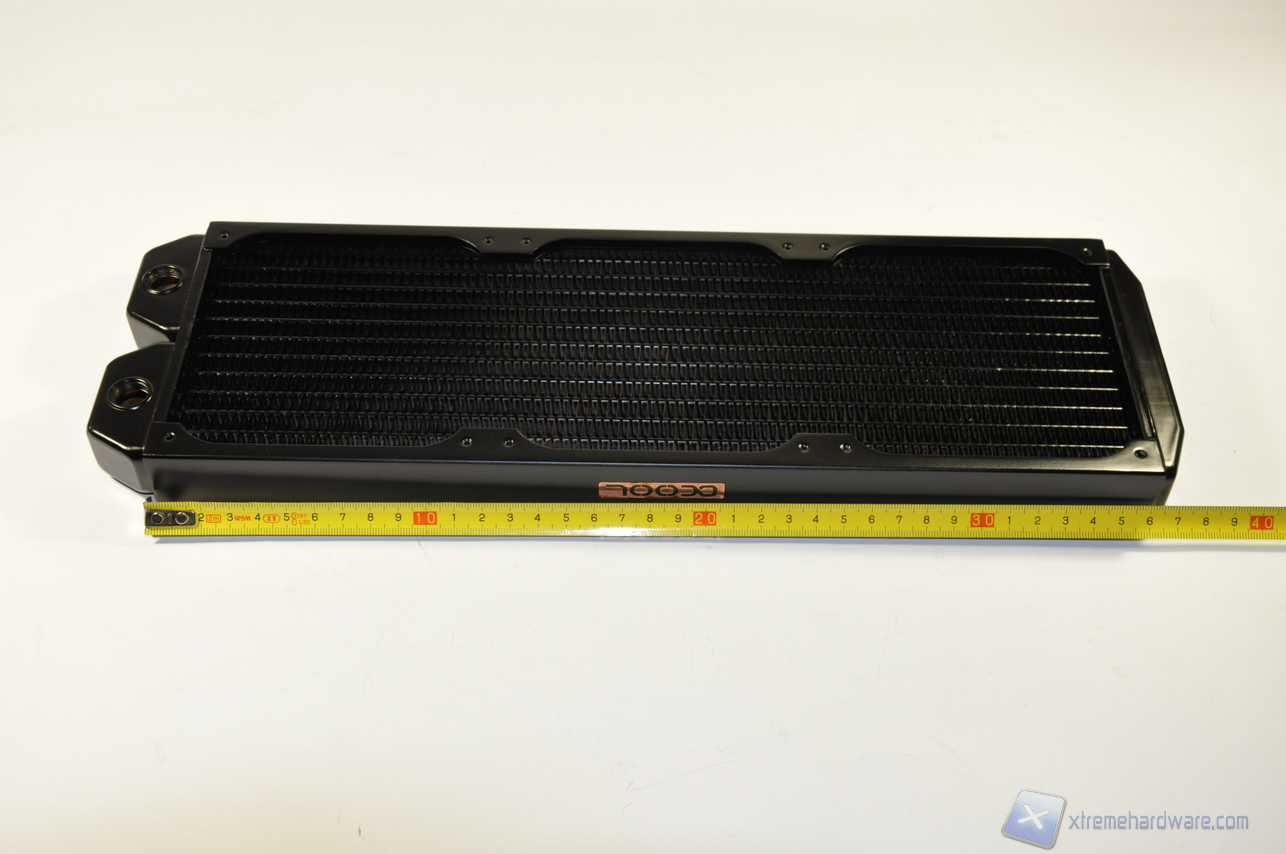 Le alette che collegano i canali hanno il giusto compromesso per massimizzare da un lato la portata d’aria e lo scambio del calore a bassi regimi di rotazione delle ventole, offrendo una resistenza minima al passaggio del flusso d’aria e dall’altro la silenziosità d’esercizio. Le dimensioni sono rispettivamente di 400x124x30mm (L x W x H). Il peso a vuoto senza raccordi è di 970 grammi. Il controllo qualità in fase di produzione è estremamente esigente e sottopone il radiatore ad una pressione di 1,5 bar prima di dichiararlo conforme e affidarlo al reparto spedizioni.